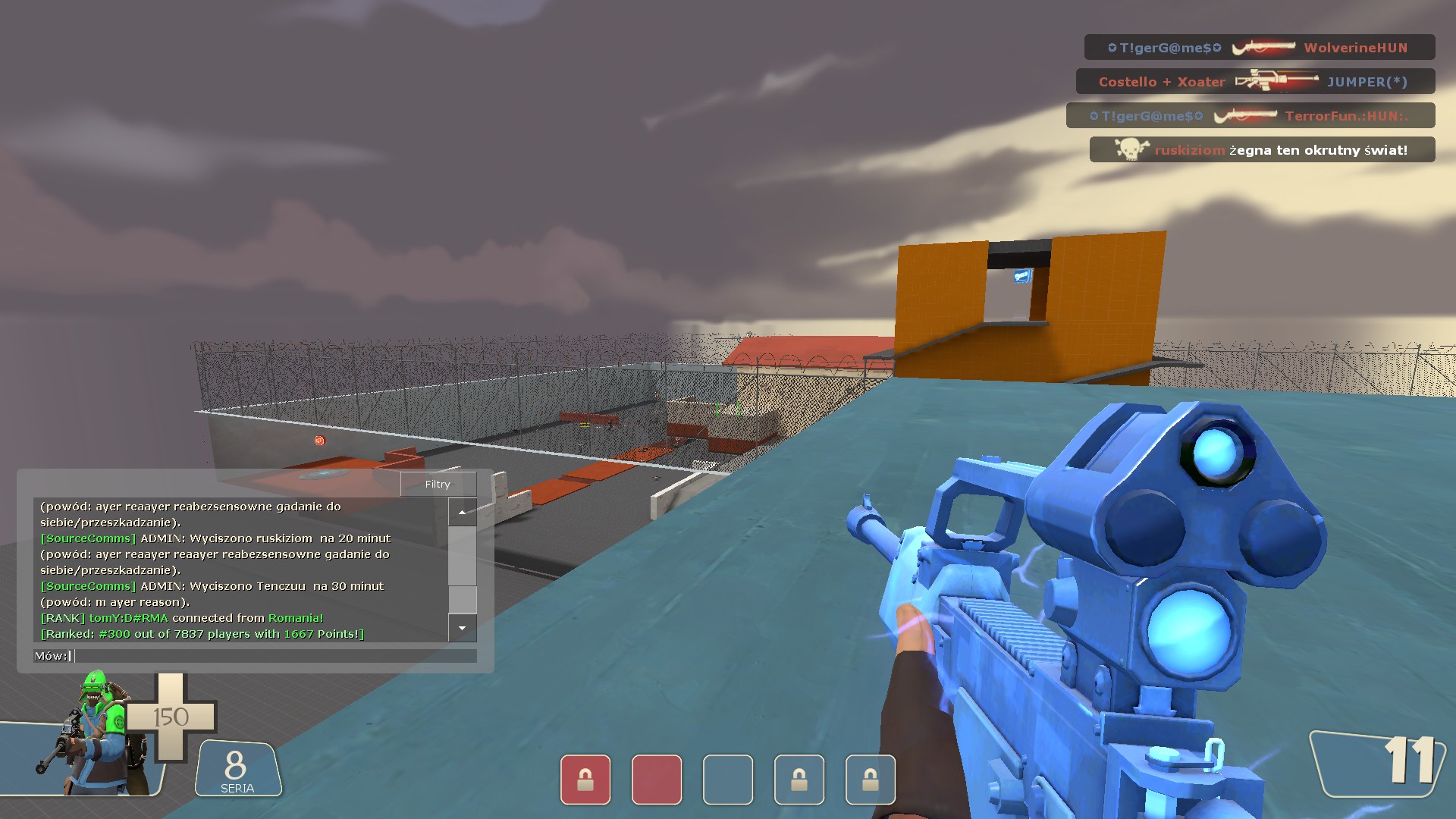 Ja już bym mu usunął range. Mówiłem Fishowi, że on jest dziwny. Mówię mu kilka razy, że ktoś spawn killuje szpiegiem musze mu mówić po 10 razy wielkimi literami, ogólnie dziwnie się zachowuje jak wlazłem sobie na kryty z ciekawości. Zachowuje się jak typowi fejm bo ma rangę